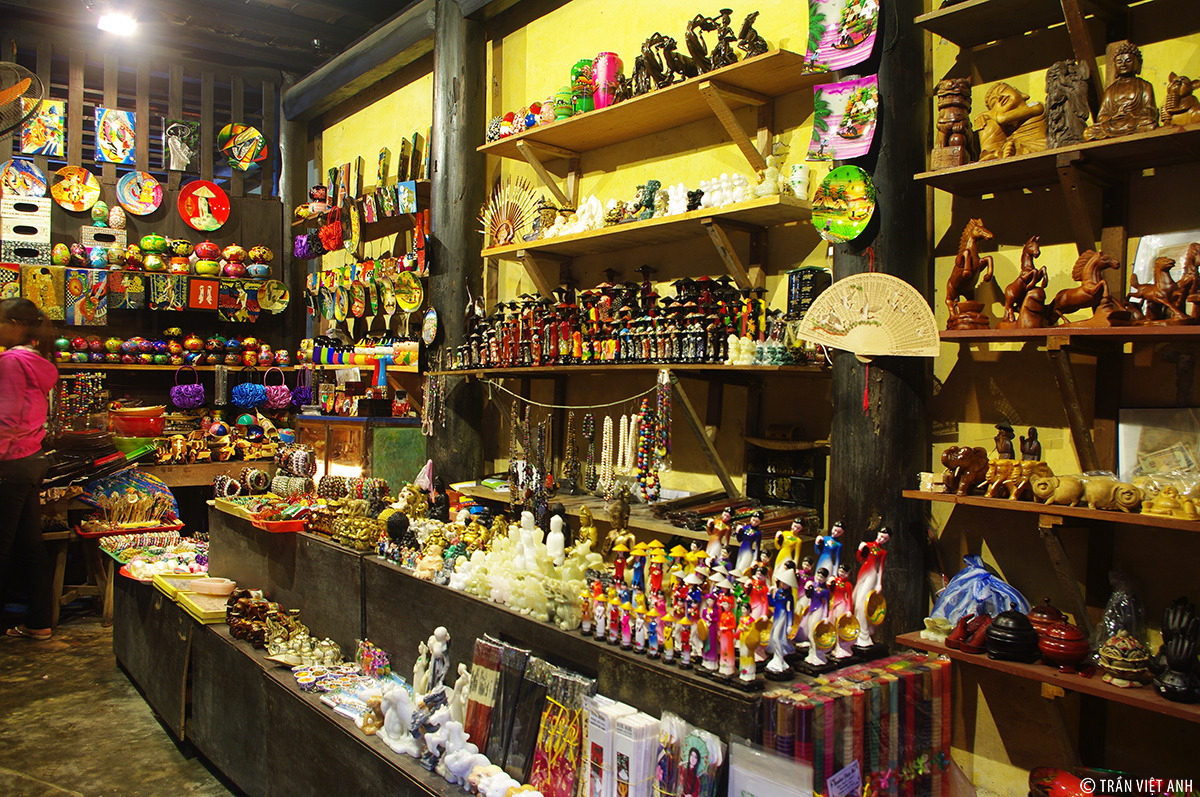 Cũng trong không gian phía sau của ngôi nhà, đối diện với những bức ảnh và cột mốc ghi lại sự kiện lụt tại ngôi nhà là nơi bày bán các sản phẩm lưu niệm cho du khách đến thăm. Đây là gian hàng của ban quản lý. Hiện nay chủ nhân của ngôi nhà không còn sống tại đây, chỉ tới làm việc trên gác hai vào buổi sáng, buổi chiều tối lại trở về nhà riêng ở một nơi khác.